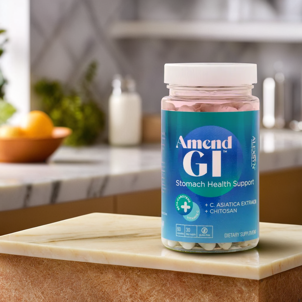 Experience breakthrough relief with Amend GI™, our innovative approach to stomach health. Unlike conventional treatments that simply reduce acid, Amend GI™ supports your body's natural healing process with C. asiatica and chitosan.