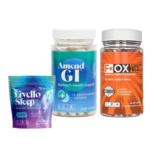 Experience the power of science-backed natural wellness with Alexsyn's complete supplement collection. Each product is meticulously formulated by Dr. Simpson using premium ingredients that work in harmony with your body's natural processes. From our revolutionary Livello® Sleep gummies to our advanced F*OX™ cognitive support formulas, Amend GI™ digestive solutions, and RevOsteo™ bone health supplements, you'll find targeted support for your specific wellness needs. Every supplement in our collection reflects our commitment to combining nature's wisdom with modern scientific understanding.