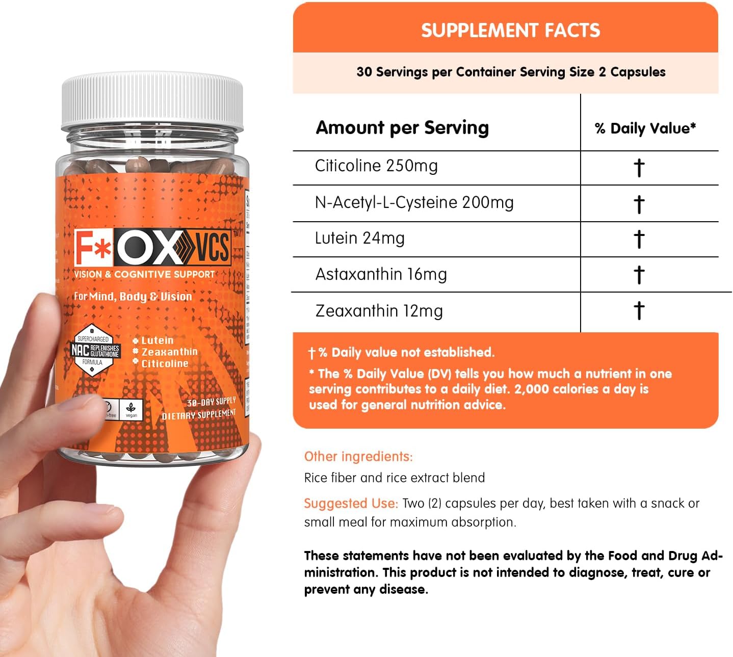 Formulated specifically to nourish and protect the eyes and mind, F*OX>VCS™ contains a potent combination of antioxidants, carotenoids, and natural, brain-boosting chemicals.